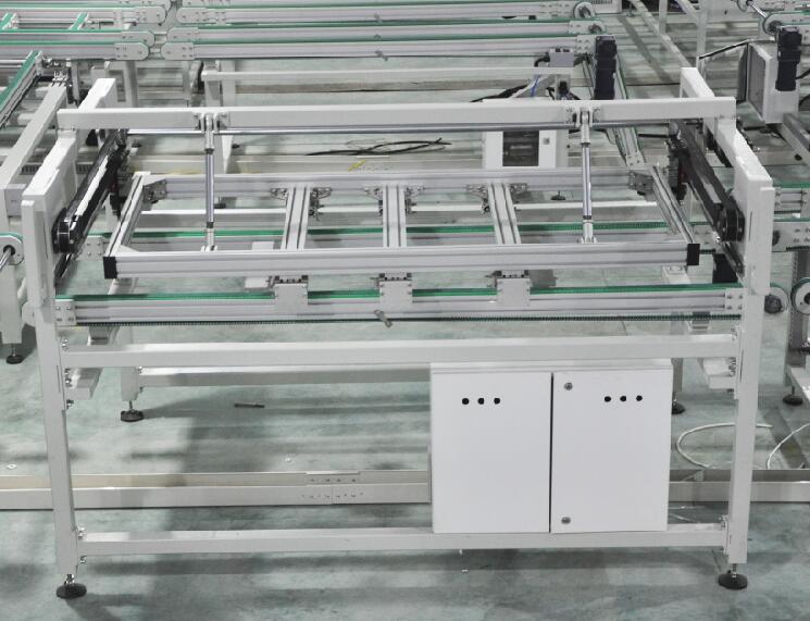 位于組件自動(dòng)線的層壓后和EL檢測(cè)前,主要功能是將層壓好的組件進(jìn)行翻轉(zhuǎn)便于操作工對(duì)組件質(zhì)量進(jìn)行檢查,操作工可以根據(jù)需要選擇手動(dòng)翻轉(zhuǎn)、自動(dòng)翻轉(zhuǎn)和無(wú)需翻轉(zhuǎn)三種功能。