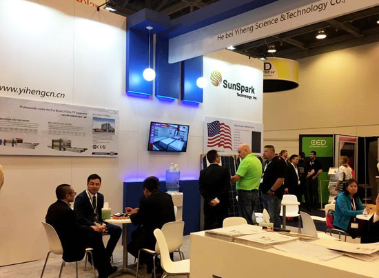 2016年7月12—14日,河北羿珩科技股份有限公司參加了在舊金山舉辦的Intersolar 2016美國國際太陽能展覽會;為期三天的展會云集來自74個國家超26000位觀眾及500余家參展商。羿珩科技新產(chǎn)品太陽能全自動流水線及層壓機設(shè)備,得到了客戶的積極反響和一致好評。