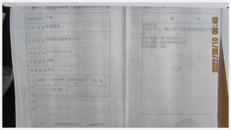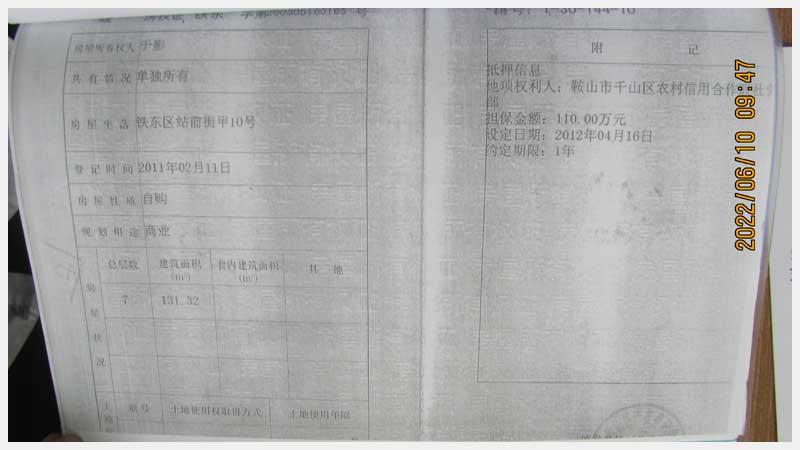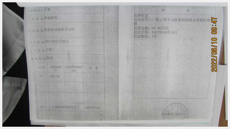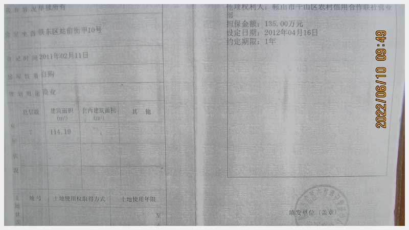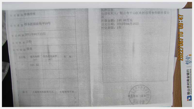 名稱:鞍山市鐵東區(qū)站前街甲10號房產 面積:342.77㎡ 瀏覽次數(shù):1411