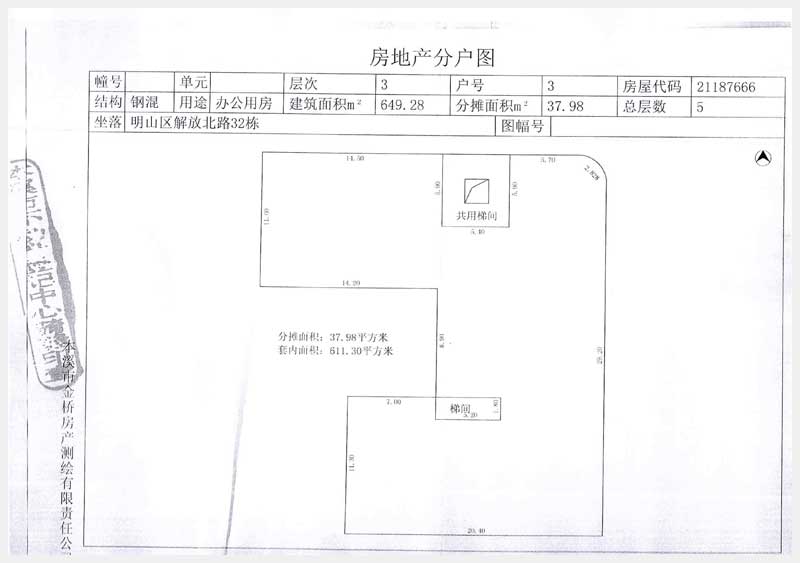 名稱:本溪市明山區(qū)解放北路32東3層房產(chǎn) 面積:649.28 ㎡ 瀏覽次數(shù):914