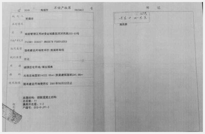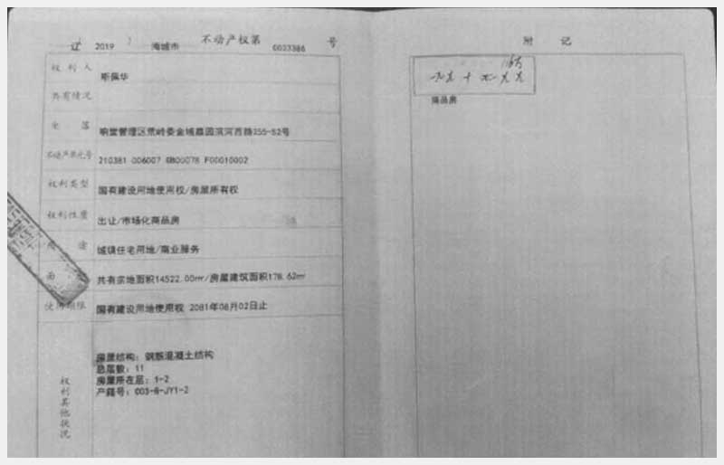 名稱:海城市響堂管理區(qū)荒嶺委金域嘉園濱河西路255-S1、S2、S3號(hào)房產(chǎn) 面積:有證:538.22㎡;無(wú)證:223㎡ 瀏覽次數(shù):844
