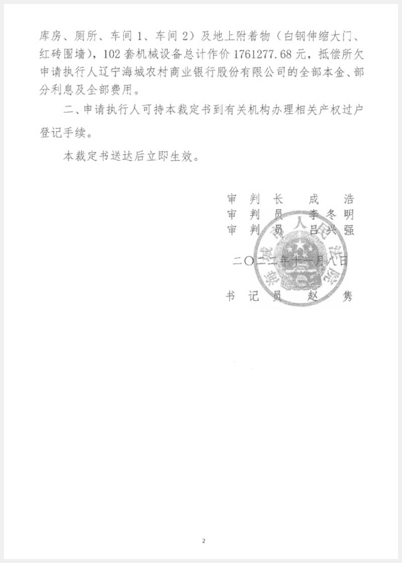 251號 海城市東四方臺鎮(zhèn)后房村房產(chǎn)、土地使用權(quán)及機(jī)器設(shè)備