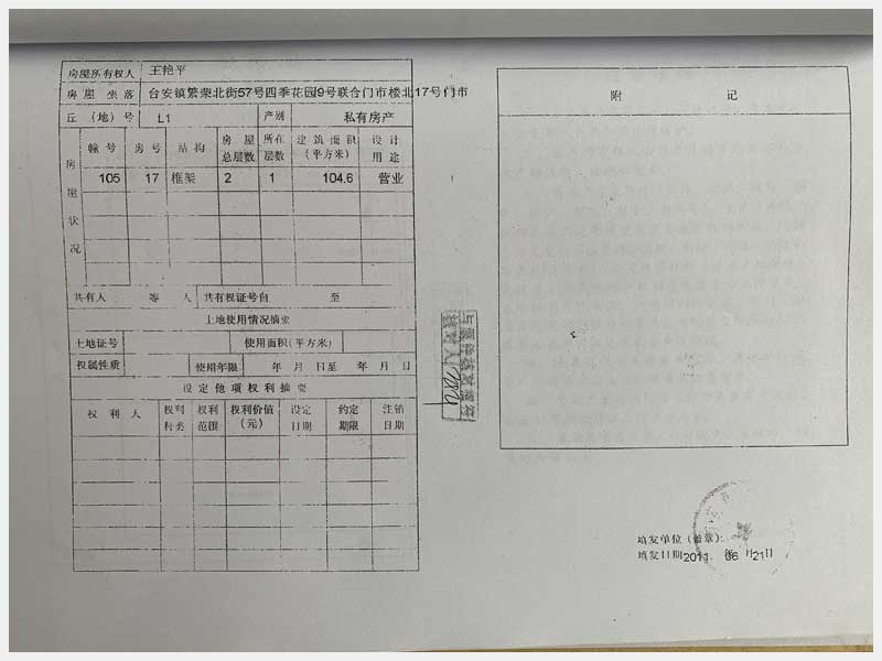 地址:臺(tái)安縣臺(tái)安鎮(zhèn)繁榮北街57號(hào) 標(biāo)的號(hào):70